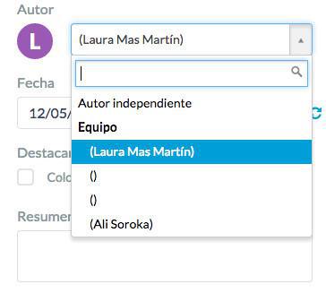 Tendrás la opción de no mostrar el nombre del autor si seleccionas "Autor Independiente" en el menú desplegable Autor.