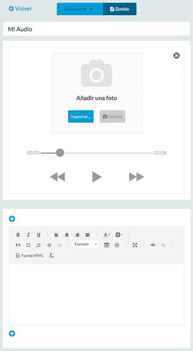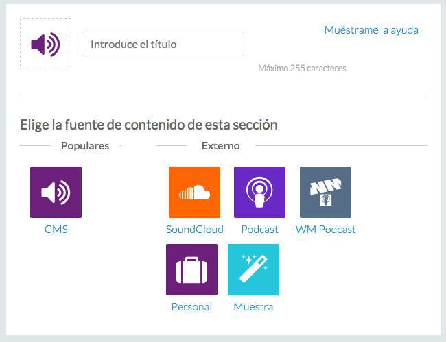 También podrás escoger en qué sección o secciones se mostrará el audio (las secciones se pueden configurar a través de Configuración de la sección).
