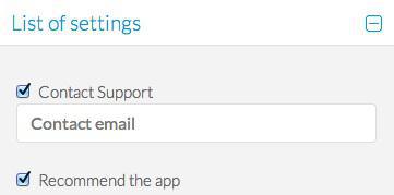 De la misma forma que para la página de créditos de tu aplicación, puedes activar las zonas de Contactar con el servicio técnico y Recomendar aplicación.