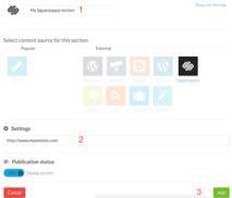Seleccione "App" y en el menú "Secciones," haga clic sobre "Añadir una sección".